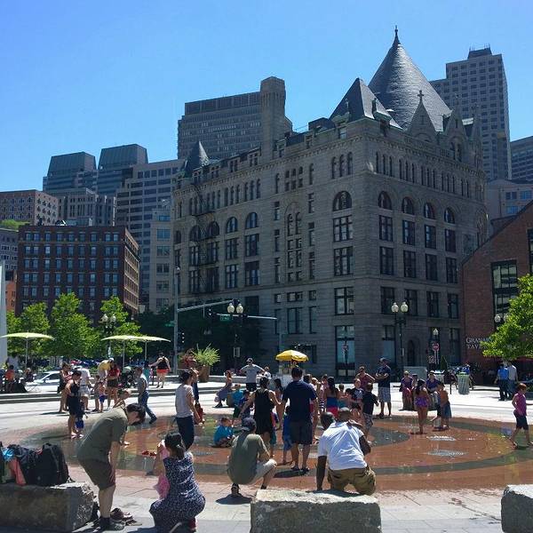 Bigdig,这个把3.5mile穿城而过的快速路置于地下及其他相关项目的巨无霸工程,预计花费220亿。Rose Kennedy Greenway是最喜闻乐见的隧道盖板部分,以肯尼迪总统他妈命名,由一连串公园构成,有广场,有喷泉,有旋转木马,有艺术装置,各有特色。但就是植物年岁不久,难当烈日炎炎……