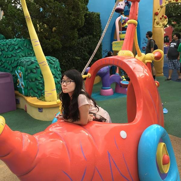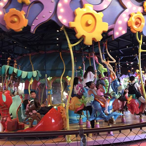 再往前就基本上是儿童区了,这一片排队的人也不少,我们在其中选了一个排队时间较短的,据说是个ride,本来我还有点小兴奋。。。排队的时候还发生了故障,总共排了大概要半个小时。然后做完就是一个大写的后悔。。。
