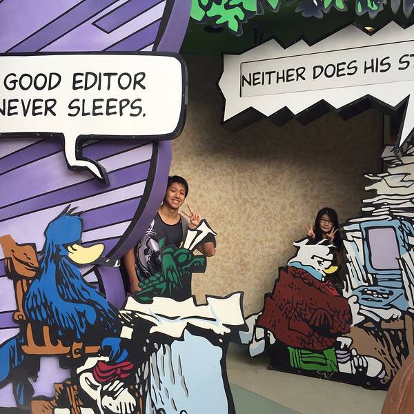 这个时候已经有一些人在排队了,不过也不算很长,大概20分钟。每一个游乐项目的排队过程其实并不十分煎熬,里面都有一些预热的介绍,让你熟悉故事情节,把你带入这样的氛围中。蜘蛛侠工作的地方。做的超级逼真,电脑上还会滚动播放坏蛋的资料和照片。这就是要坐的车子了,非常酷炫。坐稳以后就开进去了,里面是真的在跟着蜘蛛侠在冒险抓坏蛋,非常!非常!非常的有趣!但是由于是3D的出来以后会有一点晕。。。休息一会儿就好了,心脏病高血压的还是谨慎一点比较好。。。和蜘蛛侠合影。。。我觉得这些工作人员都好辛苦,穿那么多。。。不是要捂出痱子来了。。。尤其是穿着娃娃装的那些。。。5、The Cat In The Hat ★