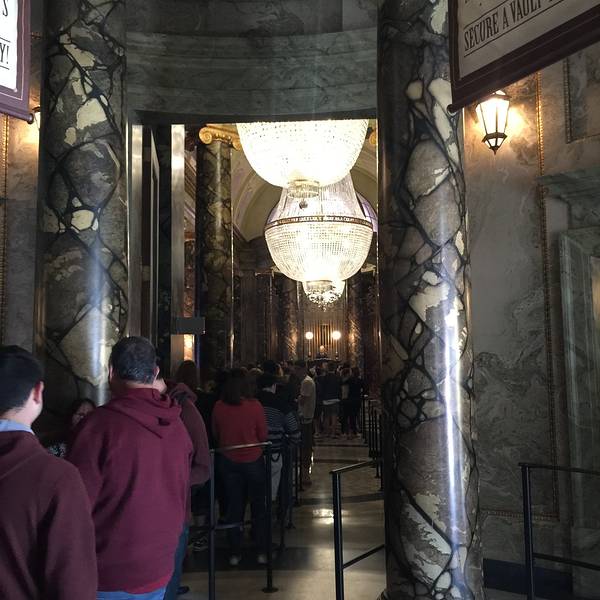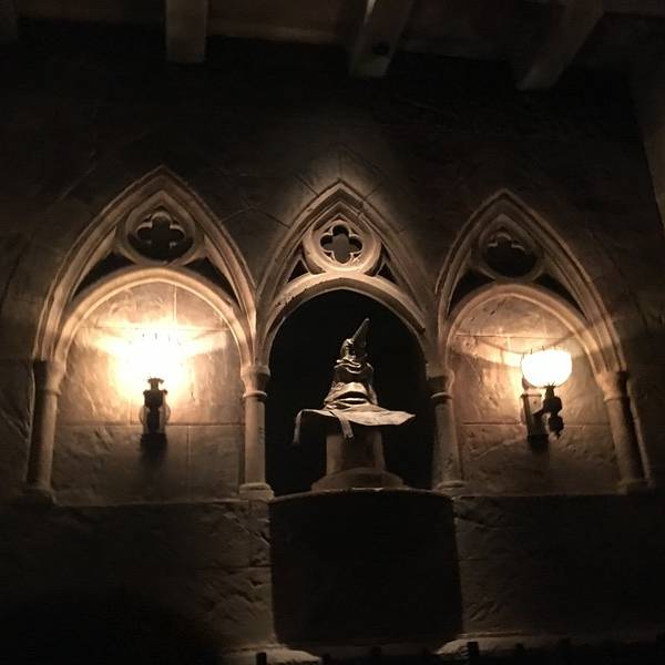五星推荐!来冒险岛必玩的项目,坐在车上跟着哈利波特冒险!绝对是一场名副其实的journey。中午的时候排队时间突然从90分钟掉到了60分钟,我们立刻就进去排队了。其实真正的队伍也就只有在外面的半个小时,里面就真的像在参观一样。进了建筑,里面完全是按照霍格沃兹的风格装修的,连每个雕塑的细节都做的很逼真。这个是前往邓不利多办公室的电梯~会说话的分院帽!会动而且一直在交流的画像们!这个做的超级好!就像真的在霍格沃兹一样!