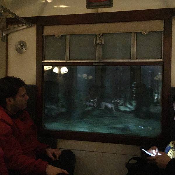 如果觉得不值得的话可以等到晚上,或者一大早就来玩。排队的过程中在木头中间发现的小松鼠。其实对着厕所拍照真的有点羞羞的,但是真的忍不住!里面有桃金娘哦~7、Harry Potter and the Forbidden Journey ★★★★★