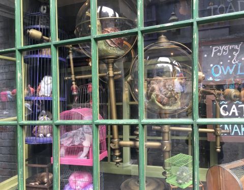 不过这个绝对不能多喝。。。我那两天喝了三次,第三次就喝顶了,比较适合尝个鲜~各种各样的魔法铺,但是大部分都只是摆设,门并不能打开。尽管只是橱窗展,但是做的都非常精细,细节也都很到位。门虽然不能打开,但是门后面依然有符合每个店铺主题的商品和摆设。卖魔杖的店铺,里面的人超多。魔杖分两种,电影人物的魔杖和自创的魔杖。每个盒子上都印着人物的名字,魔杖的样子也是按照电影里面一模一样做的。有些摸上去很有质感,沉甸甸的。有些魔杖可以按照特别的魔咒在一些地方执行特别的任务,但是会稍微贵一些。一直在呜呜嚎叫的monster book。6、Flight of the Hippogriff ★★★★