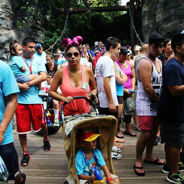 今天在迪士尼。我们把普遍认为最不好玩的动物王国放在首日。迪士尼每天每人可以有三个fast pass。我们的策略是在迪士尼的官方app上提前一天看好排队最多的是哪些项目,一进园首先去玩这些项目,fast pass留给不是那么热门的项目。在园区里有wifi,所以可以随时随地用手机app修改自己的fast pass。