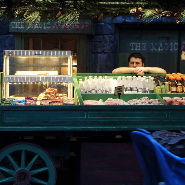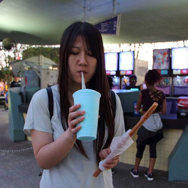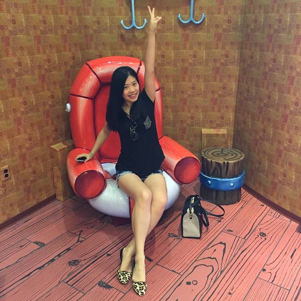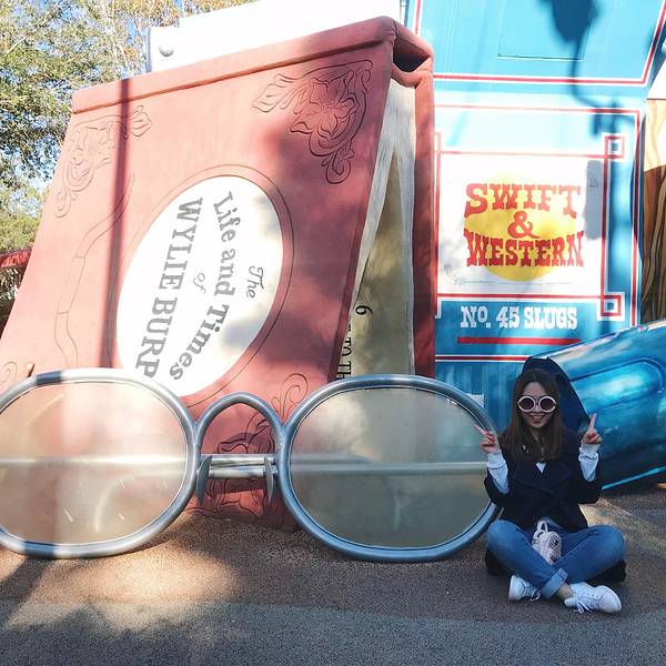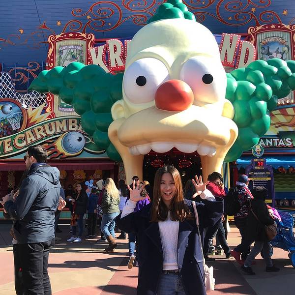学妹是直接趴在了地上,真的是太怂了!坐之前是要存包的。虽然我也很怕过山车,但是这么经典的项目,还是要体验一下的。随便找了个地方拍照,拿着学妹极度浮夸的墨镜凹造型,哈哈哈。辛普森一家!冷+憔悴,我只能强颜欢笑了。最最期待的哈利波特园!有动画的报纸哦。古灵阁ride是我们唯一排队超过一小时的项目,那么排队的时候干嘛呢?当然是靠自拍来打发时间啊。