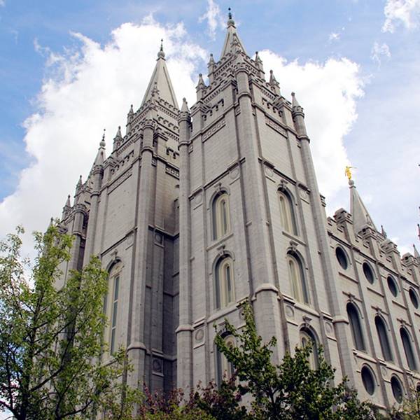 盐湖寺占地10英亩(4.0公顷)的神殿广场,犹他州盐湖城的核心。其他寺庙一样,这座宏伟的建筑被认为是基督圣徒的神圣之地。