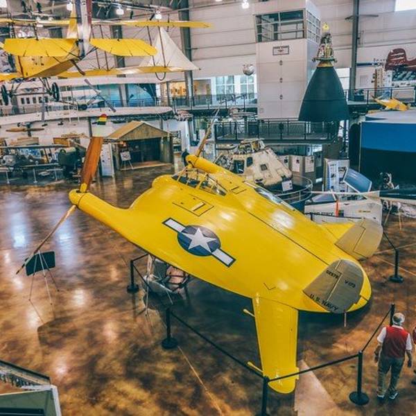 博物馆中间的航天飞机“企业号”是美国航天历史上重要的见证。另外,编号为Langiey Aerodrome A的飞机前,告诉我们一个航空史上鲜为人知的故事。这是一架设计于1903年的飞机,从造型上看,比航空史上著名的莱特兄...