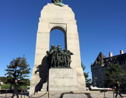 今年正好是第一次世界大戰結束後的一百週年,加拿大也參與其中,因此舉辦許多活動,如果九月前有來此旅遊的人,可以在紀念碑斜對面的國會草坪,欣賞晚上十時投影在國會大廈外牆的戰爭歷史暨和平宣言。
