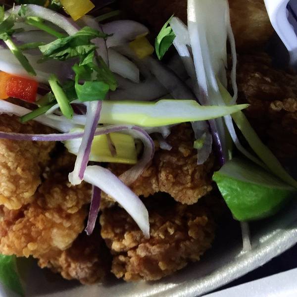 坦白说,因为民宿的入住体验非常不好,图片上看着风情万种的房子,里面真心回到解放前的赶脚!不累述了,回忆依然还会觉得心累!(所以以后要想美美的体验海景就必须撒银子。)就在兴奋值和预期值双双扑街之后,转角遇到爱!因为犯了个大迷糊,以为住处到海边步行个十几分钟即可,原来那是车距;一个拐弯还拐错了路口,就这样在住处附件的小超市遇见了李小龙的狂热粉丝墨西哥裔的M先生,并极力小超市外车摊super good的小食!告别M先生Uber到condado beach!其实Condado海滩的海岸线非常长,与迈阿密海滩比较类似,uber司机把我们载到她常常去玩水的地方,其实是选了个距离最短的海滩,还是功课做得不足,才会没有主意的听信各种建议!就是上图的这片湾湾,与Condado的第一次相遇。怎么有种粉红沙滩既视感哈哈因为小摊离condado beach热闹的商业区还有一段距离,所以游人很少,本地人倒是很多!尽兴的泡了会儿水,尝尝在海边兜售的小糕点,准备去见识下真正的Condado了!按照google map显示,步行十几分钟即可到达Ocean‘s(传说中棒呆的海景餐厅),预备去那吃饭看海! 从小摊出来,马路对面小摊,热火朝天,就学着别人的样子点了柠檬水和烤鸡肉串。某人一直说这是他来美国吃过的最好吃的鸡肉。所以说,撸串的美妙是四海八荒皆准的。吃完了小食,就继续向前了,虽说是正午,阳光毒辣,但是风也是呼呼的,有种和太阳较劲的感觉。来到了繁闹的商业区,却没有大餐一顿的欲望,找了yelp上推荐的三明治店小食一餐。小食以后直接前往oceano's所在的度假酒店内部,就知道美丽的沙滩就在这昂贵的外表下。酒店入住人员的躺椅和大阳伞,我们是享受不到了。逮了小哥问了问有没有租借阳伞的地儿。真是问对认了,20刀砍价砍到15刀,放下背包,就可以肆意的玩水了。浪劲特别大,直接把我打趴下了,据说我是被浪带着在海里滚了两圈的。(海边时不时有兜售小食和啤酒饮料,虽然不敢保证是味美价廉,但暂时解渴充饥也是可以的。所以如果没有屯粮去海滩,又不是撒了银子在酒店入住的客人,也不用担心在海边晒到脱水,饿到脚软的。)湿漉漉的我们走了一小段,让夏日的风风带走我们身上的海水吧,留下的盐分会住处冲洗了! 夜色,洗净,出门,吃!回到小超市那,和当地人一样, 冰镇啤酒走起,摊车上点了两份鱼,一份炸的,一份凉拌的;味道居然有种东南亚的风味,应该是柠檬的缘故吧!