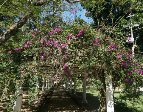 巴西是世界上植物种类非常丰富的国家,得天独厚的气候条件,让这座里约植物园里树木葱茏、花团锦簇。里约植物园更是公认的“世界十大植物园”之一,已经被联合国教科文组织列为“生命博物馆”。 植物园介绍 植物园建园于1808年6月13日,面积137万平方米,迄今已经收集了逾8000种植物,许多植物的树龄都在百岁以上,高大挺拔的树上还密密麻麻生长着很多附属物,如苔藓、蕨类、和仙人掌等。进入植物园,高大的帝王椰子林立在道路两旁,穿过高大的林荫大道就可以看到一种名为铁树的珍贵树种,这种树木坚硬厚重,在水中浮不起来。此外还有巴西红木,巴西的国名就源于此。园内还设有植物博物馆、图书馆和环境教育。如果恰逢雨天,不要懊恼此时的海边不能作为自己自由的秀场,植物园是个雨天比晴天更有魅力的去处,周末来这里放松的市民很多,惬意的环境中有时会传来月儿的音乐,平时倒是十分安静。