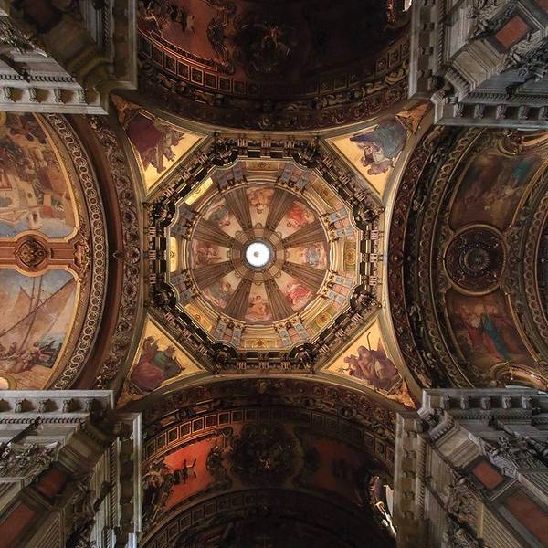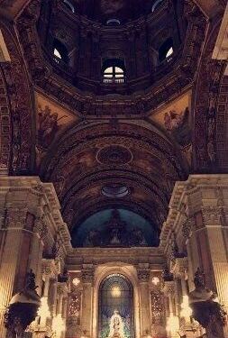 和之前看过的罗马教堂有相似之处,整体感觉庄严肃穆,气势恢弘,顶部绘画也很漂亮
