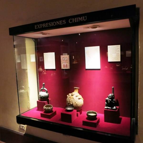 看完这个casa,就去考古学博物馆,沿Pizarro继续往北走,到Junin街往右(往东)拐,再走两条街到Ayacucho,路口就是博物馆了。门票5sol/人,发了一张纸简单介绍馆内收藏,不过只有西文的,展厅内文字说明满多,但也只有西文。博物馆并不大,也是安置在一处老casa里,并且只占用了一半厅室安置展品。藏品主要是本地的古文明,其中Cupisnique和Salinar文明一个厅,稍后的主要文明莫切(公元2-9世纪)、奇穆(公元9-15世纪)出土文物各一个厅,后来印加的少数文物和奇穆放在一个厅里。博物馆另一样吸引我的景观是厕所的马桶,这里的马桶竟然和我在墨西哥南部一些地方遇到的一样,也是没有马桶圈的...