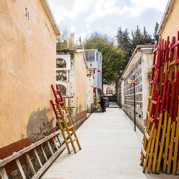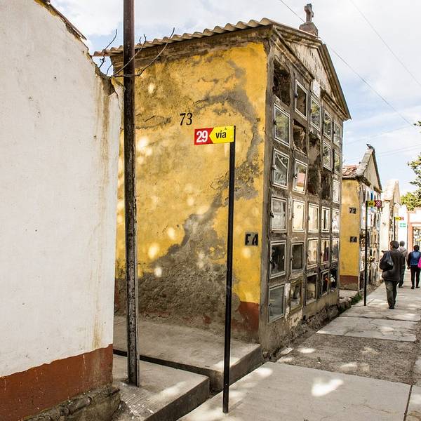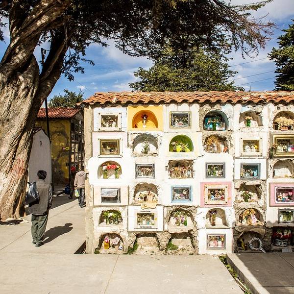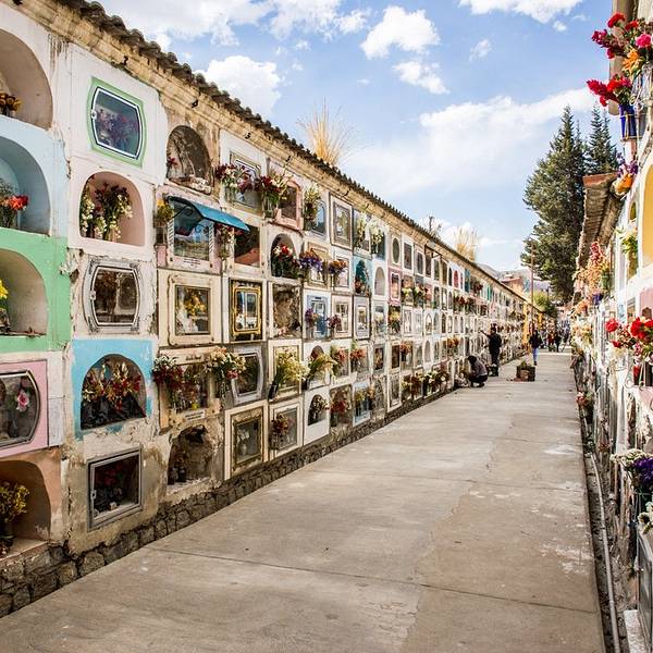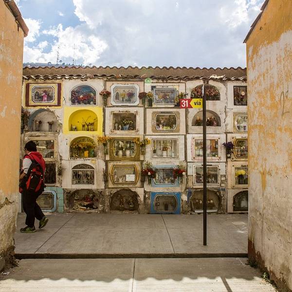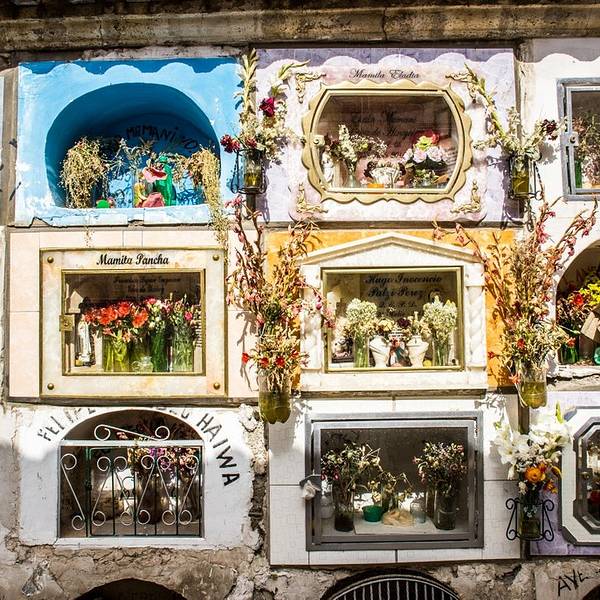 在大多数拉丁美洲的墓地,尸体首先用传统的西方方式埋葬或者放置在一个墓穴中。然后在十年以内,它们被挖出并火化。火化后,丧者的家属为骨灰购买或者租玻璃墓地墙,他们放置墓碑和丧者生前的纪念品,玻璃门后方上鲜花。每一个墙都有数百个这样的门,并且其中的而一些墙向上扩展到如同三四层公寓楼。墓地因为人们祭奠亲人带来的鲜花而充满了“生机”。