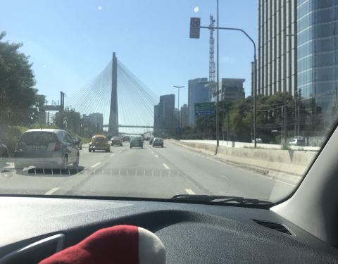 奥克塔维奥·弗里亚斯·德奥利韦拉大桥,是横跨圣保罗市皮涅罗斯河(RioPinheriros)的斜拉桥。大桥2008年5月落成的,耗时3年,全长1.4千米,连接皮涅罗斯河大道和罗伯托马里尼奥大道。 它是一座由一个桅杆支撑两条弧形轨道的桥梁,亦是世界上弯曲度较大的拉索桥。这两条轨道一个海拔高12米,另一个高24米,每一条都近似长达900米。 主塔造型看上去就像是一个大写的“X”,十分巨大,高度达138米,相当于46层大楼的高度。“X”型的下部有76米宽,上部则有35.4米宽。桥梁设计可经受风速高达每小时250千米的大风。在每个紧固件上都安装了传感器,能够控制对它们适用的力量,还可以调整组装的机械应力。每年12月底,五颜六色的照明灯将悬挂在大桥缆索上,把大桥主塔装饰的如同圣诞树一样,十分亮眼。