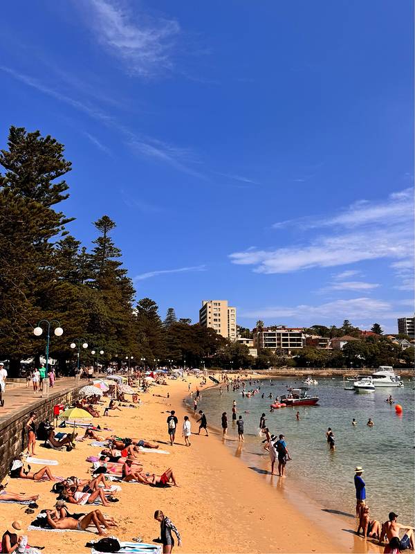 ...整洁 游人如织 海水清澈 可浮潜 游泳 也可冲浪 环海可健走 许多家庭出游 感觉轻松 温馨推荐从雪梨港搭Manly 渡轮 约20分钟 途径雪梨大桥 雪梨歌剧院 都可照全景 Manly beach 沙滩整洁 游人如织 海水清澈 可浮潜 游泳 也可冲浪 环海可健走 许多家庭出游 感觉轻松 温馨推荐