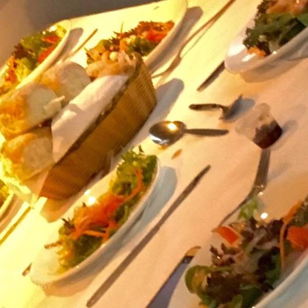 因为我也是道听途说的。晚上的餐,在游船上吃,一份鳕鱼三道式。