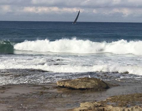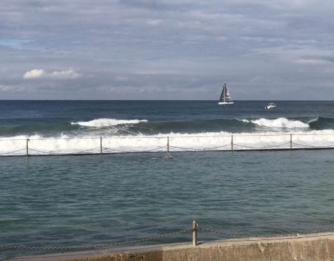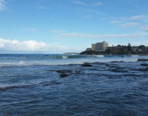 cronulla可以坐火车抵达,下车后穿过步行街就到达海滩(如果向相反方向走就是wharf可以坐船去bundeena,即是皇家国家公园),沿海滩有很好走的步行路,我们去的那天,海浪很大!