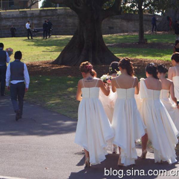 那天,还遇到了在这里举办婚礼的新人。各种幸福。话说在澳洲,我们几乎每天都要看到新人在户外举办婚礼,有在海边的,有在公园的,有在草坪的,有在歌剧院观景台的。每一场婚礼规模都不大,大约20、30个来宾,婚礼现场也布置得不豪华,大多都是简单地用丝带装饰一下。但是比起国内现在流行的各种大摆百桌宴席的豪华婚礼盛典来说,我更喜欢这样真正属于自己,属于最亲的亲朋好友的小型户外婚礼。幸福得难以言语。
