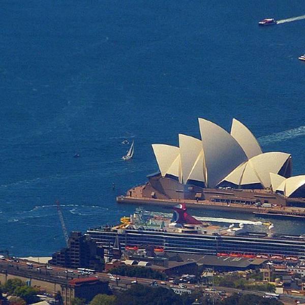 ...对面就是码头,运气好可以看到巨大的邮轮,注意我在飞机上拍的照片,歌剧院对面就停泊一艘巨大的邮轮实际上悉尼歌剧院是一个交通要道,它的后面就是一个地铁站,或者叫高架轻轨站,对面就是码头,运气好可以看到巨大的邮轮,注意我在飞机上拍的照片,歌剧院对面就停泊一艘巨大的邮轮。