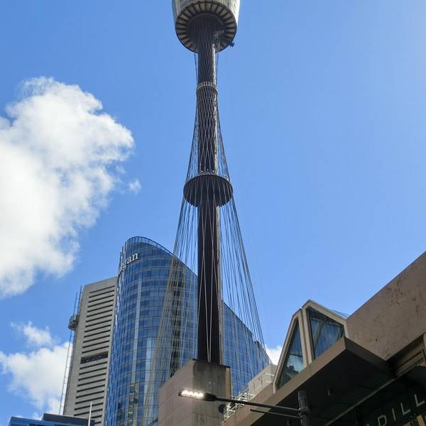 就在下面看看也没感到什么震撼,有时间去上海陆家嘴一带走走那才叫震撼,晚上的夜景更没的说,要是有...悉尼塔Sydney Tower建成于1981年,是南半球最高的展望台,和悉尼歌剧院、悉尼海港大桥并称为悉尼三大地标性建筑。楼高300米(展望台离地高度为250米),由56根每根重达7吨的巨缆支撑。