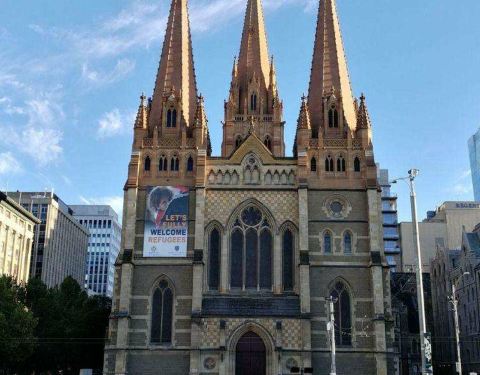 圣保罗座堂位于墨尔本市中心Swanston街与福林德街火车站的交叉口,就在福林德街火车站的斜对面,是墨尔本市区较闻名的地标建筑之一。 1. 地标性建筑 这座宏伟的教堂由英国建筑师威廉巴特菲设计,建于1891年,是墨尔本较早的英国式教堂,大教堂由青石砌成,墙壁上有着精细的纹路。1932年,教堂又加了3根尖塔,使它看起来更加雄伟。在教堂外面的草坪上还有马修·福林德(澳洲较早的拓荒者)的塑像,教堂内部彩色玻璃窗、釉烧地砖、木制座椅及拱顶墙裙的红色,教堂内巨大的管风琴,光辉与色泽同教堂内的红色装修融为一体,教堂外竖立着几位非常值得纪念的雕像,而且还有一个很漂亮的小花园。 2. 精美的雕刻与彩绘 通过敞开着的厚重木门,进入到这座新哥特式建筑里头,挑高的屋顶之下,釉烧地砖与原木桌椅显得古朴而大气,还可以看到许多精致华美的雕刻,这里的每扇玻璃门窗上都有彩绘,诉说着不同的圣经故事,许多细节都值得慢慢品味。 3. 每周六中文礼拜仪式 除了欣赏壮美的教堂建筑,平日里游客也可以到此做礼拜,每周六10:00还有中文礼拜仪式,若恰巧经过可不要错过了。