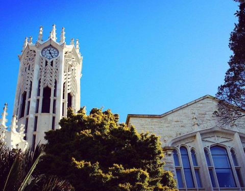 建于1883年的奥克兰大学(The University of Auckland),被誉为“国宝级”大学,是新西兰综合排名第一的大学,也是新西兰规模最大、科系最多且最具影响力的大学。 1. 开放式校园奥克兰大学占地很大,四面敞开,没有大门,正因这种开放性从而与整个奥克兰相融为一体,感觉像是城市公园,三条街道穿校而过,环境十分优美。最吸引人的是大学花园,绿草翠荫花满园,散步校园中,时不时看见坐在草地上阅读的学子,又或者是树下约会的少男少女,我们不妨找个长椅坐下,看着这些来往于公园林荫道的大学生们,彷佛又回到学生时代。2. 象牙塔造型的钟楼是其标志性建筑奥克兰大学校园内标志性的钟楼(University Clock Tower),是奥克兰建筑艺术的集大成者。这座庄严的钟楼酷似一座象牙塔,其中的装饰具有芝加哥学派建筑风格并融入了新西兰的奇花异草和特有动物造型。这座庄严的象牙塔建于1926年,将新艺术运动风格和芝加哥学派建筑更个融为一体,这里对外开放。