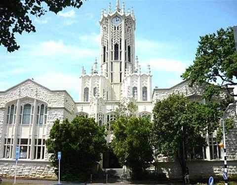 在新西兰顶级学府中漫步,欣赏象牙塔造型的庄严钟楼。