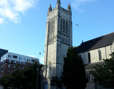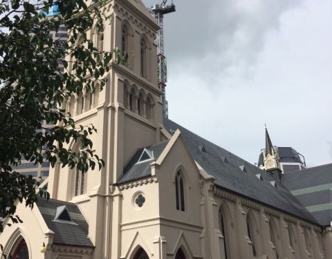距离天空塔大约5分钟路程,就在道路边上,很漂亮的一座哥特式建筑,很多海鸟在周围盘旋。
