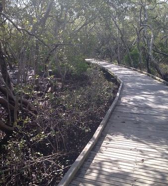 Quick walk through with the dog Stopped here to break up a journey North and to walk the dog. Found a friendly and informative ranger who gave us some information about the wetlands and also directed us to the dog bowl for water. Nice flat walking trail about 2klm long with a bird watching platform about half way along. Very serene while watching the birds and small fish in the creek.