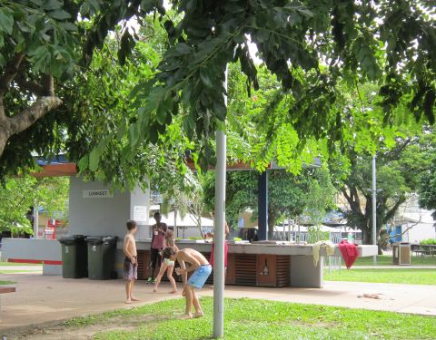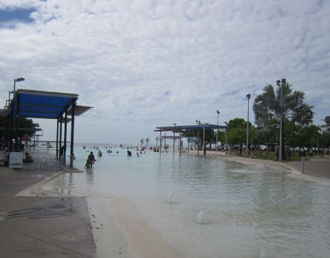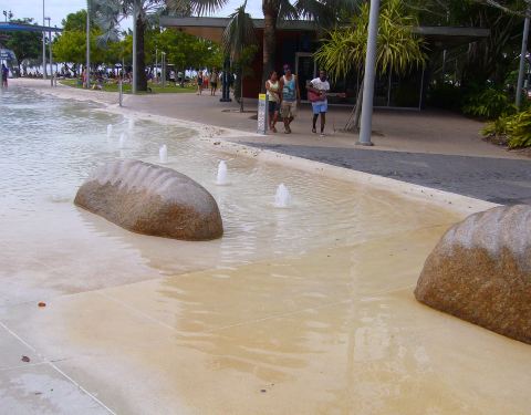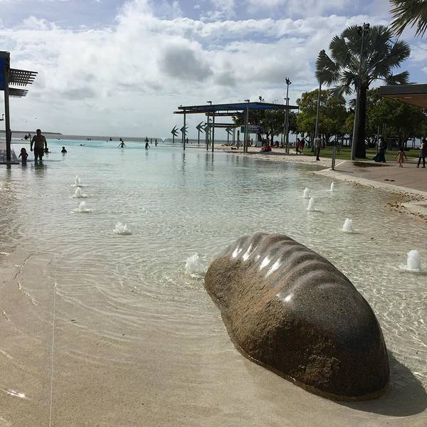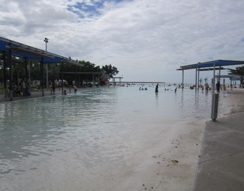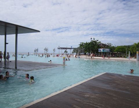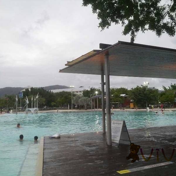 这其实是一个人工的游泳池面积非常大,有好几个水池组成这其实是一个人工的游泳池面积非常大,有好几个水池组成。每天下午的时候就会有很多凯恩斯的当地人和游客去泳池边玩水,泳池旁边还有售卖冰激凌和甜品的小店