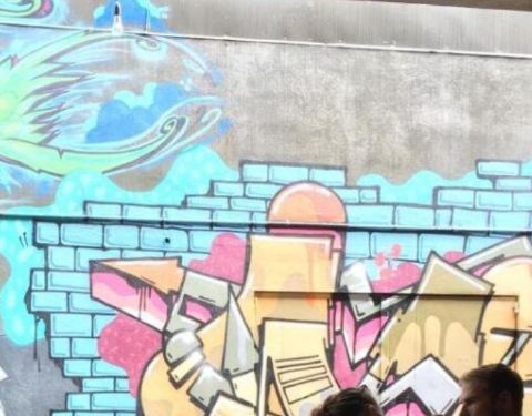 很有艺术气息的咖啡厅,墙壁现代风格涂鸦。