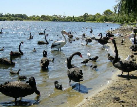 这里可以看到西澳大利亚标志性的动物黑天鹅。湖畔有步行道和自行车道,是当地人休闲散步的场所