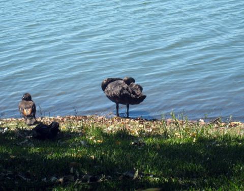 在一个社区中间,附近没有什么游人,只有环湖跑步和推婴儿车散步的本地人.好多黑天鹅阿,还有绿头鸭和其他水鸟,就在湖边休息.找个凳子坐下可以静静的观察它们,不知不觉时间就溜走了.