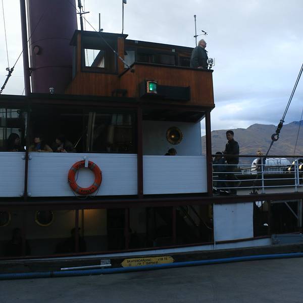 乘坐蒸汽船就一个码头,在镇中心,距离缆车不远,当然皇后镇本身就不大,一个四方形的小镇,穿过一条步行街就可以到达汽船码头,步行街两边都是餐馆和小商品。蒸汽船码头周边有很多餐馆,还有个小广场,广场上有跳街舞,吹萨斯风的人们。