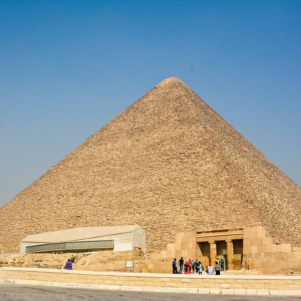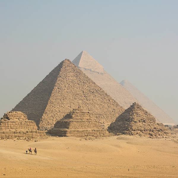 位于吉萨平原上的吉萨金字塔群是一组金字塔的统称,而不是一座单独的金字塔,它们分别建造于公元前2600年至2500年,是古埃及文明的代名词,也是世界七大奇迹之一。 规模 塔群中三座较大、保存较完好的金字塔分别是胡夫金字塔、卡夫拉金字塔和孟卡拉金字塔,三座金字塔按照猎户星座排列。 胡夫金字塔 进入景区后首先看到的就是胡夫金字塔,它是迄今为止保存较完好的一座金字塔。胡夫金字塔的墓室入口在离地面18米的高度。进入内部不准照相,内部的甬道有灯照明。内部可以参观法老密室,密室是一个花岗岩砌成的小房间。 卡夫拉金字塔 卡夫拉金字塔内的构造和胡夫金字塔一样,内部也可以参观法老墓室,墓室内依旧空空如也,唯有一个四方的空石棺,靠壁而放。好奇的话可以站在垫脚石上,往石棺内望一眼,里面同样空空如也。 孟卡拉金字塔 参观完卡夫拉金字塔,旁边便是三座金字塔中较小的一座孟卡拉金字塔,可以欣赏它的外观,拍拍照。也同样可以进入参观。孟卡拉金字塔的入口要比胡夫金字塔和卡夫拉金字塔小的多,通过几级石阶便进入梯型通道。