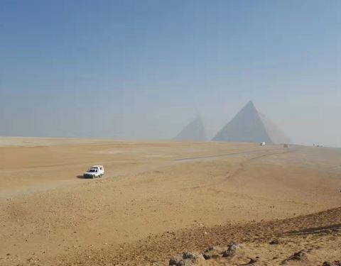 但建筑形式更加完美壮观,塔前建有庙宇等附属建筑和著名的狮身人面像。它至今已有4500多年的历史然后去观景台去拍照,顺便在车里远观了第二座金字塔。