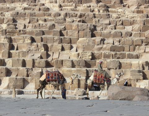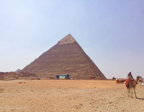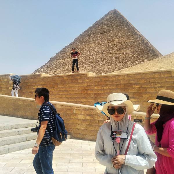 “骗子”、还是“骗子”,所以从一进门就有了警惕之心,刚到入口后碰到这个大叔,他跑过来指导我们拍...【金字塔】 在定了到埃及的机票后,便开始看关于埃及的书、电影、纪录片,希望能了解埃及多一些,关于古埃及几千年的历史,神秘又神奇,有研究人员说金字塔是外星人的杰作,也有研究人员说那是古埃及人的智慧,不...【金字塔】 在定了到埃及的机票后,便开始看关于埃及的书、电影、纪录片,希望能了解埃及多一些,关于古埃及几千年的历史,神秘又神奇,有研究人员说金字塔是外星人的杰作,也有研究人员说那是古埃及人的智慧,不然不会有完美比例的金字塔。【关于骗子】在进入金字塔之前,从各种参观过的中国人点评里看到最多的就是“骗子”,“骗子”、还是“骗子”,所以从一进门就有了警惕之心,刚到入口后碰到这个大叔,他跑过来指导我们拍照,我心想“这肯定是教人找角度然后收费的”,所以我们一直没搭理他,他倒是很主动的调整手机角度,然后我们不约而同在金字塔底的巨石旁坐下,他问“有清凉油吗?”,他说他想给他的妈妈。这时才明白过来埃及人很喜欢清凉油,可是很遗憾我们并没有带。我们开玩笑问他有几个老婆,他说一个都没有,问他为什么,他指了指天上,意思是上天不给他,因为他胖。这时候过来一个买咖啡茶的小贩,他问我们要不要喝,我们顺便给了一点钱,他死活不收,并举起胸前的牌子说“我在这里工作的,我看护金字塔,不让人爬上去!” 然后他带着我们看了他的骆驼,讲好拍照片只需要30埃镑(折人民币12元)。一路遇到的牵着骆驼的人,也只是热情的招呼了一下,拒绝后他们也离开了,传说中的骗子确实没遇到。【爆热的金字塔】 因为太热太热,热到快要中暑的节奏,所以没有好好的去感受金字塔的魅力,这一点是很遗憾的,唯一的感受是很心疼金字塔景区里的马儿,一匹马的马车载着3个人爬坡,酷热难耐,马儿张大嘴巴呼吸,艰难的在主人的鞭子下爬坡,而到了下坡的时候,马蹄直接滑了下去,心疼这些沙漠里给主人们赚钱的马儿们,只有沙漠之舟骆驼,悠闲地在主人的牵引下漫步,或许,只有骆驼,才可以在这漫漫黄沙之中,生存下去。 展开