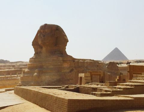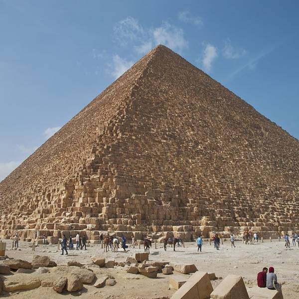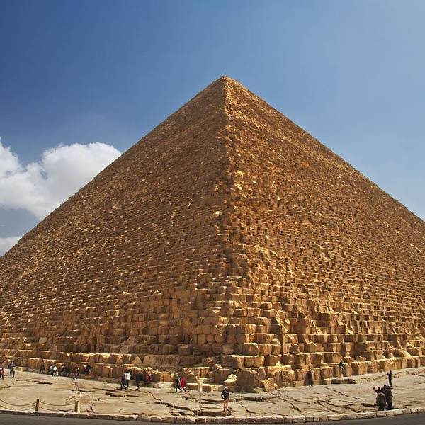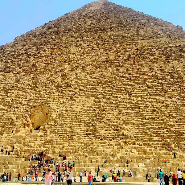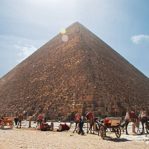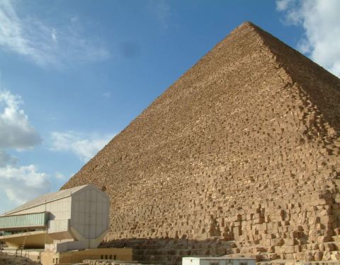 塔的中心有墓室,游客可以参观,从离地面一定高度的入口进入甬道前往胡夫金字塔是吉萨金字塔群中最大的金字塔,位于开罗西南郊,又称吉萨大金字塔,是古埃及第四王朝的法老胡夫的陵墓,建于公元前2580年。金字塔呈方椎体形,四面各边长230米,原高146.4米,现为137米,用230多万块...胡夫金字塔是吉萨金字塔群中最大的金字塔,位于开罗西南郊,又称吉萨大金字塔,是古埃及第四王朝的法老胡夫的陵墓,建于公元前2580年。金字塔呈方椎体形,四面各边长230米,原高146.4米,现为137米,用230多万块石块砌成。塔的中心有墓室,游客可以参观,从离地面一定高度的入口进入甬道前往。这是一座基本上由实心的巨石组成的小山,它没有大自然的造就,没有机械力量的凭借,在地球表面留下了完全由人力动能形式转换而成的物质形态,这就是4500年前的人创造的世界奇迹。 展开