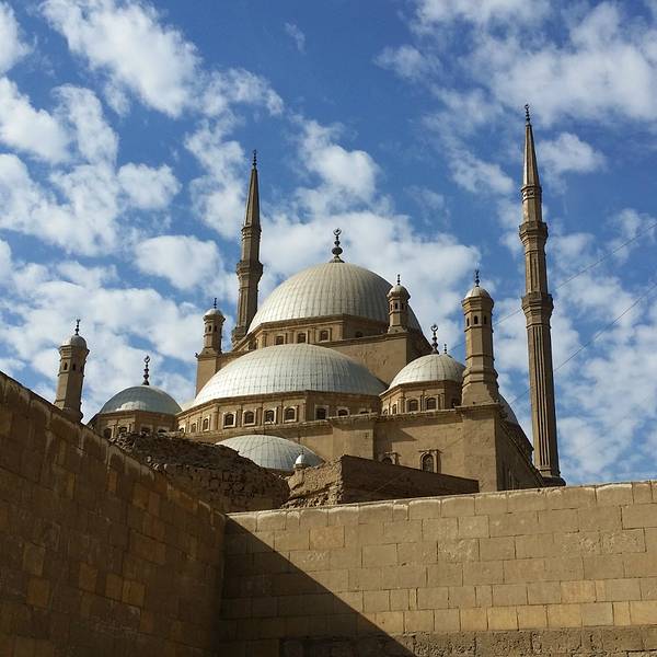1805年,阿里被拥戴为埃及帕夏,成为19世纪奥斯曼土耳其帝国的埃及总督,由此创建了埃及阿里王朝。1807年率军击溃侵埃英军。自1811年起,不断向外扩张。他于1849年8月病故于亚历山大,后葬于此处,开罗的穆罕默德·阿里清真大寺。我们在清真寺大厅中央围坐一圈,听导游高远讲述伊斯兰教和穆斯林的故事、习惯、生活、民俗。。。比如关于斋月的意义等等。。。我看着四周和头顶的窗棂和灯盏发呆,默罕默德阿里之后的两百年,是经历一战、二战的时代,是埃及人摆脱了两千多年以来异族人统治的时代,是纳赛尔、萨达特、穆巴拉克的时代。。。走到大厅的角落,阿里就葬在这里。帝王陵墓葬于寺中,也算是仅见了⋯⋯近在咫尺之间的一世英豪,已静静的在这里长眠了一百六十多年。走出清真寺,一览埃及全景。。。远处的开罗塔,触目可及。挥别默罕默德阿里,挥别萨拉丁。。。。