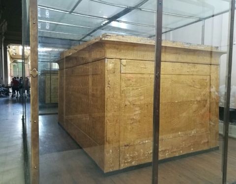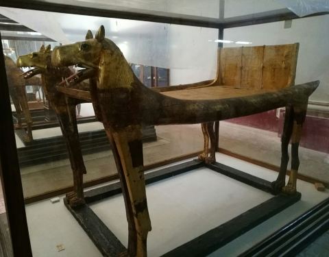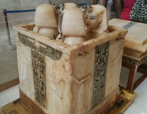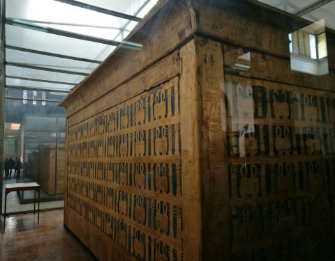 图坦卡蒙墓穴中所有的财宝和文物都搬到了埃及博物馆中。由于图坦卡蒙的墓室没有被盗过,所以出土文物之多令人惊叹!金色的棺材套了好几层,在博物馆中占据了很大的区域。最出名的是图坦卡蒙的面具,摆放在博物馆中一个单独的小房间,虽然不另外收费但也不允许拍照。