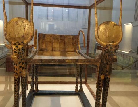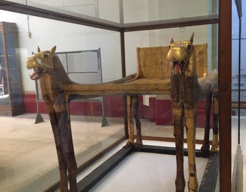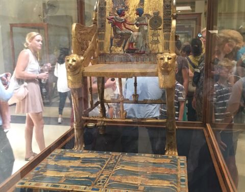 埃及博物馆里,图坦卡蒙的财富这个展厅,是最最奢华的一个展览,因为图坦卡蒙的墓室没有被盗窃过,所以陪葬品非常完整,金碧辉煌!