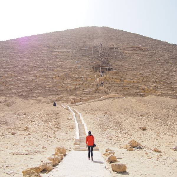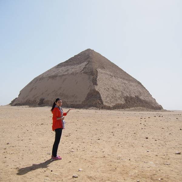 里面展示的草沙纸都是真的草沙纸,还有一个会说中文的小伙子(叫高山)讲解草沙纸的制作规程,这段我...最后是代赫舒尔,历史上第一座成行的金字塔,又叫红色金字塔,远处有一座建造失败的金字塔,叫弯曲金字塔,据说是算错了角度,那法老不愿意葬在那,就把那失败品给他媳妇了,自己重建了一个。我问导游那建筑师有...最后是代赫舒尔,历史上第一座成行的金字塔,又叫红色金字塔,远处有一座建造失败的金字塔,叫弯曲金字塔,据说是算错了角度,那法老不愿意葬在那,就把那失败品给他媳妇了,自己重建了一个。我问导游那建筑师有没有被杀?导游说没有,不过那人本来是皇家首席建筑师,由于这个失败被贬为庶民逐出皇宫了。感觉法老还是挺有人情味的,换在秦始皇那早被诛九族了。