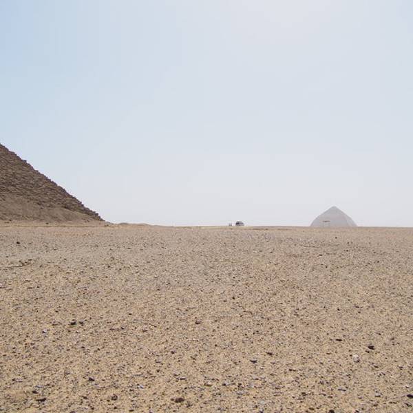 这算今天看到的第一座真正意义的金字塔,车还没到,就开始欢呼兴奋。为什么一定要来代赫舒尔,除了可以看到金字塔的演变历史,你还可以感受到在人挤人的旅游景点吉萨金字塔所没有的原始感。 这里没什么游客,就两座金字塔肃立在荒漠上,古老的遗迹不就是应该这么的孤独和沧桑吗?它不就是在这里待了5000多年也没啥人理他吗? 展开