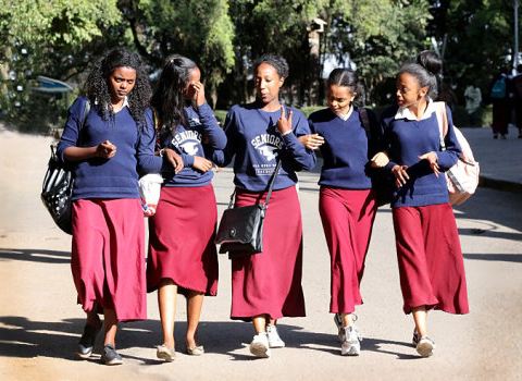 亚的斯亚贝巴圣三一大教堂旁的学生