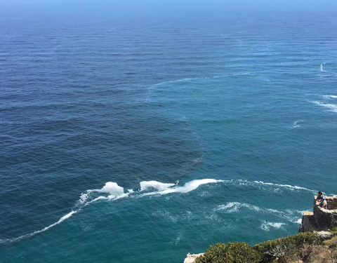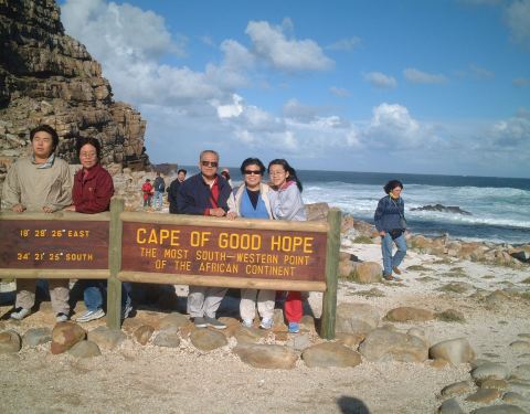 非洲大陆最西南端,开普敦的标志。 在好望角的标志纪念牌前拍照合影。 登高开普角,眺望大西洋和印度洋的分界线。