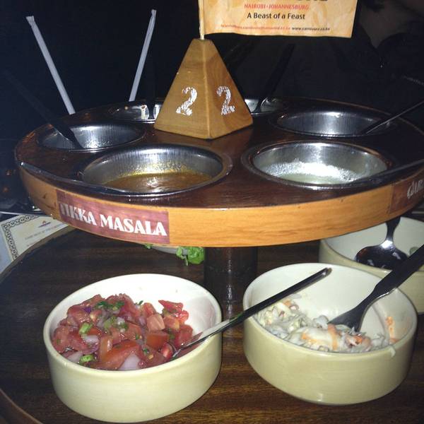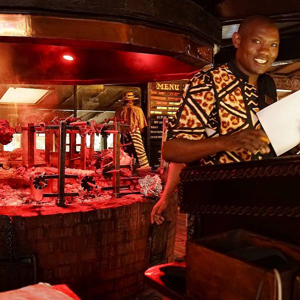 食肉兽餐厅是肯尼亚非常出名的一家餐厅,被评为“全世界50佳餐厅”之一,英文名为:carnivore,在这里可以吃到美味的烤肉大餐全世界的游客都慕名而来,当然,这里吃的是牛羊肉为主,野生动物肉是不可能吃到的,因为围猎在肯尼亚是被禁止的。服务员穿着斑马的围裙在烤肉,烤好的肉直接拿到你的桌面给你一块一块地切。刀功非常了得。