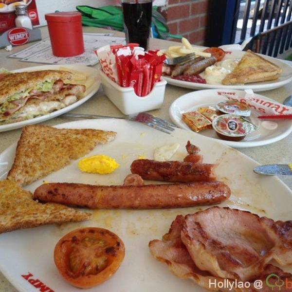 每天都是吃吃喝喝~又是吃,感觉去旅游除了玩就是吃~ WIMPY里面妈咪最喜欢吃的是一种之士香肠,超喜欢。 之前在南非生活时常来这吃,值得推荐。服务员来给我们点餐了我说,现在的小朋友实在是幸福了 到哪里吃吃喝...