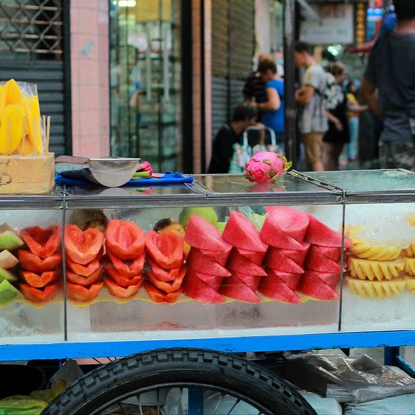 在暹罗购物广场里面买的冰淇淋。满街都是超级新鲜的水果。总觉得他们的院子颜色始终特别好看。路边买的小吃