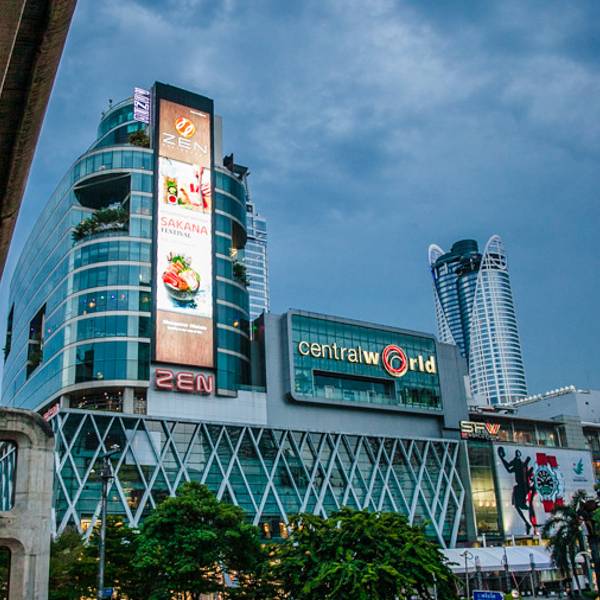 Central World商圈位于曼谷的市中心,是东南亚最大的购物中心之一。它由三个部分组成:两头是Zen百货和伊势丹(Isetan)百货,中间是Central World。