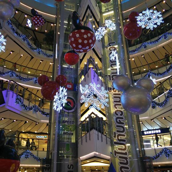 今年元旦去的,商城做了精心的装饰。今年的主题是迪士尼乐园,所以到处都可...来曼谷如果要买买买,一定要来siam商圈啦,这里聚集着超多大商场,central world就是其中之一。乘坐天铁下了车就到了,交通非常便利。