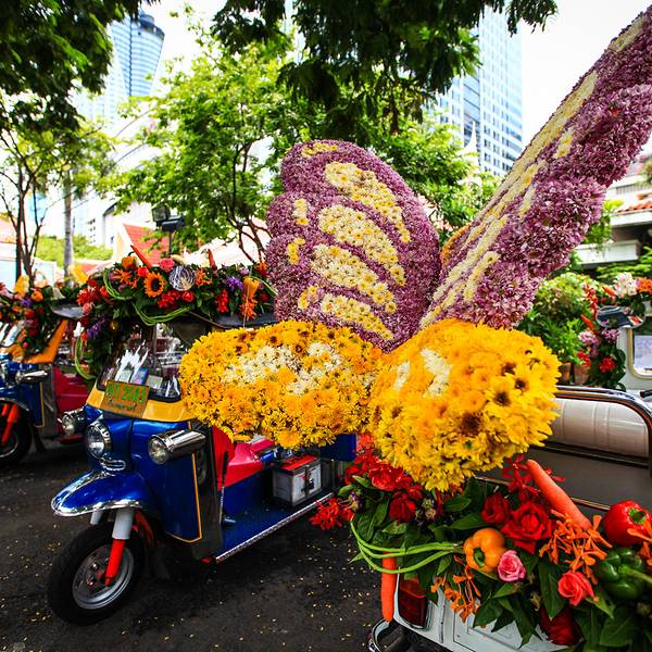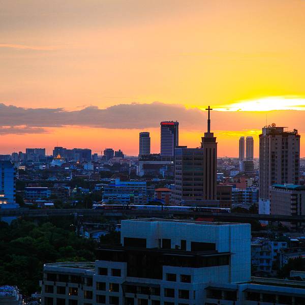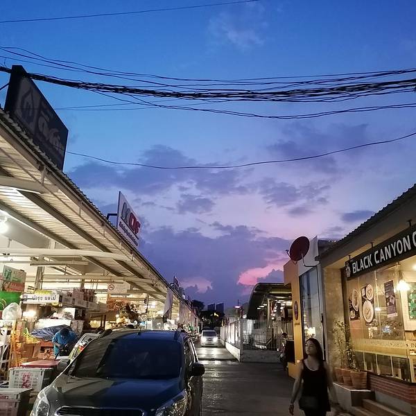 在中央世界购物广场可以坐观光大巴,号称是24小时的,三条线路自己选,我们选了最便宜的购物线,80左右的价格,十几个点,中间随意下,玩够了再做下一班(说是半小时,其实差不多得等一个小时才有下一班,就在下车那里等。建议早上去坐,可以玩一天,泰国的交通费还挺贵的,如果不坐大把和捷运的话,这个还蛮好的,最好选旅游线,购物线虽然便宜,但是商场都逛吐了,有些商圈带很多美食,但我们只听了介绍,时间太赶,也不是饭点就没去吃,可以顺便吃,最后会带你去市区的王权免税店,我们本来就要去 也算省了一部分的事儿,车上吹空调,下车自由玩,玩完了再上车,自由自在,还是可以的!!(王权的攻略后面说)这个自带解说器,但是会滞后会提前哈哈哈,看到五星红旗还是很激动的。选购物线路的话没什么好介绍的,选旅游线应该还是挺丰富的,会给每人送一副免费的一次性耳机。在大巴看到的,也算很有趣了。其中一个点,是一个市场,我们去的太晚了,都没什么人了,但是好在大雨前的天空很美,大雨后的人就不美了。